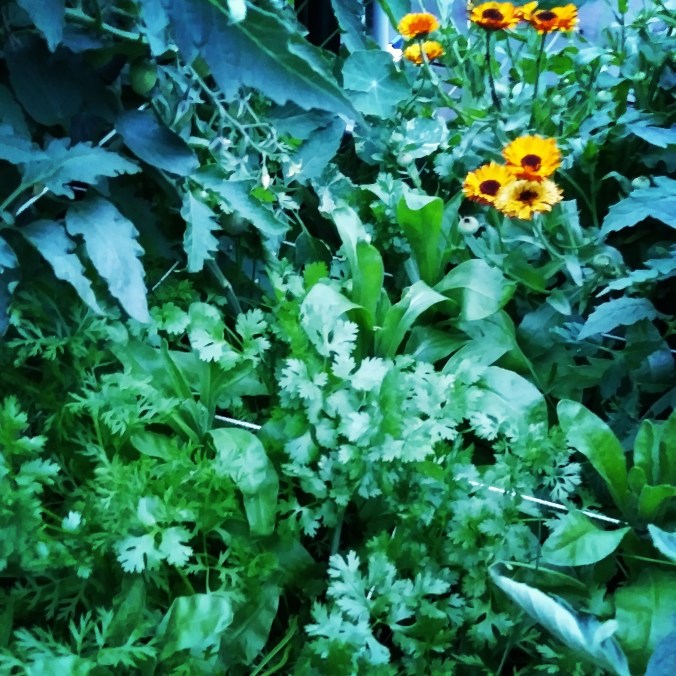 - I needed to relearn the way I viewed a “successful” harvest. Last year, I would wait to harvest my carrots until they were all ready at once. Then sometimes I would be disappointed that I only got one bunch of carrots out of a square foot or what have you. Well, I started following a lot of home gardeners on Instagram. And many of them post pics of what they harvest. Many of the harvest pics are a mix of vegetables, rather than a big bowl of all the same (like you would have when you are growing for sale). For example, they might pick a few handfuls of lettuce leaves, a couple swiss chard leaves, a couple kale leaves, a scallion or two, and a couple springs of herbs, and enjoy that as a salad….rather than harvesting an entire bunch of herbs at once that would just go to waste in the fridge if you didn’t use it all in time. For some reason that blew my mind, that you don’t have to harvest a whole bunch of any one thing in order to have a good harvest. You can harvest several veggies directly into your salad bowl and that’s great when you are gardening for home consumption rather than selling your harvest. (Mind blown!)